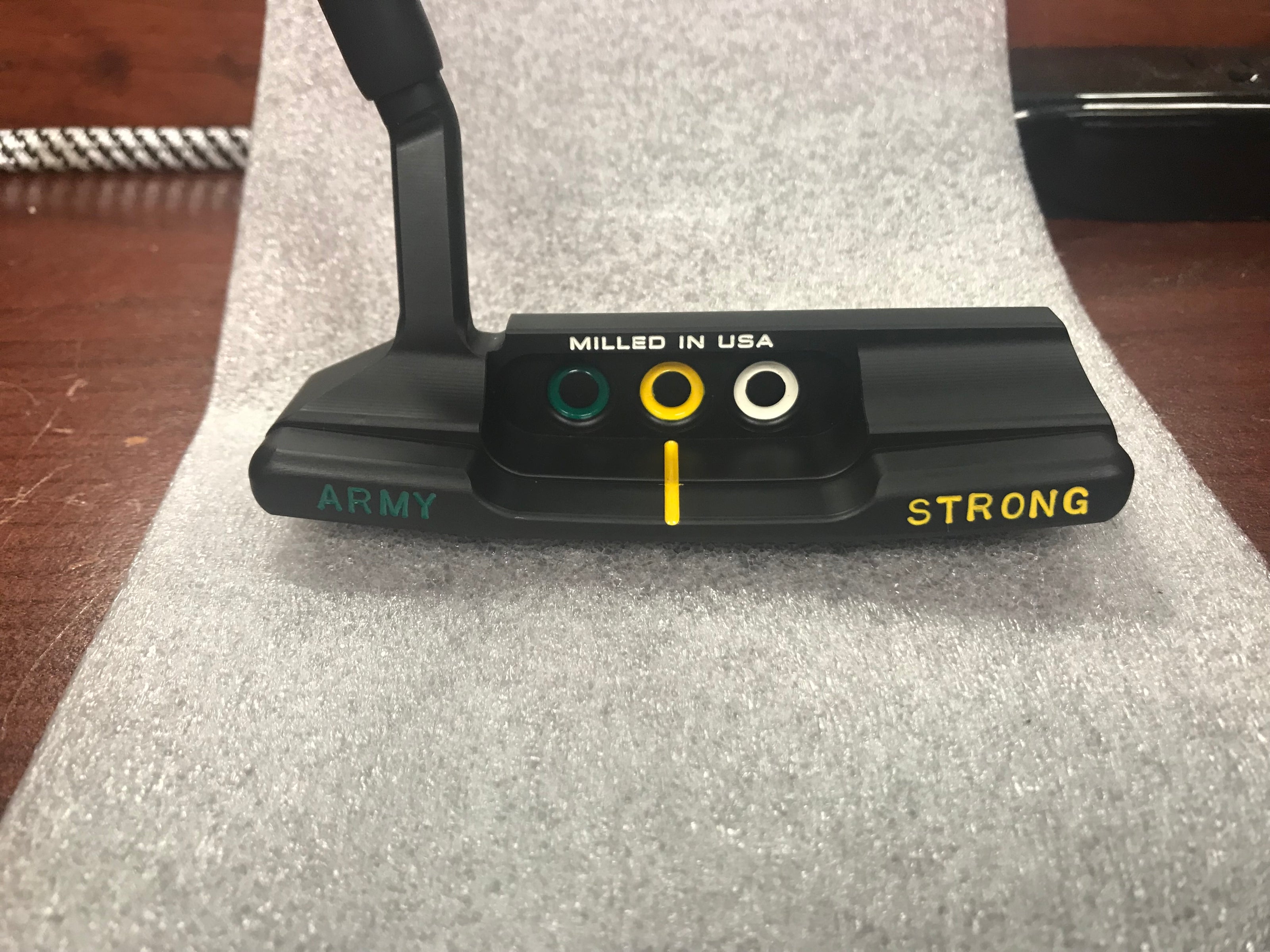 The Newport model draws its inspiration from the Classic 1, one of the first putters produced by Cameron Golf International in late ‘92 and made famous in the ‘93 Masters win. The Newport has a plumbing neck for 1/4 toe hang. The Newport's radiused topline and softened edges create a more natural, soft look and the use of a Teryllium inlay produces a distinctly soft sound and feel. Teryllium, an alloy of 12 metals backed by an elastomer membrane, produces the softest feel in the Cameron line. Evidence of the new alloy’s exceptional performance characteristics can be found in the TeI3 Newport’s role in winning the 1997 Masters.